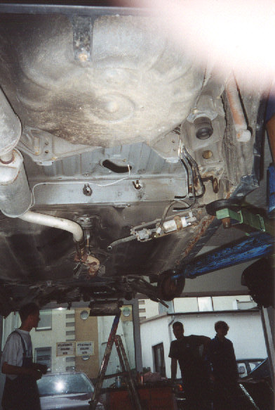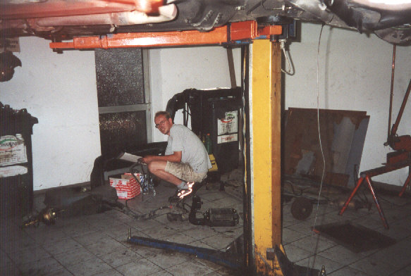 Nun wurde dem Spenderauto die Hinterachse komplett mit Bremsanlage ausgebaut. |