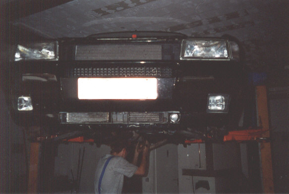 Hier bereitet Killer gerade die Frontstoßstange vor, soll heißen, es musste ein Loch für Öl- und Ladeluftkühler rein! |
